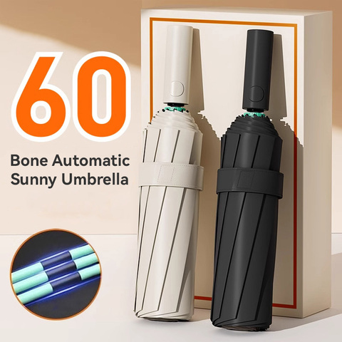 Di alta qualità 60 osso completamente automatico pieghevole Business ombrello UV protezione con 12K costole tre-modello pieghevole regalo aziendale